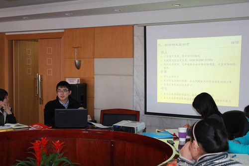 首先,毕业于中科院上海光机所材料学专业的沈应龙博士就“大中华区的创新探索-跨国公司与跨国研发”与同事展开交流。通过对国外与台湾案例的分析,提出依靠跨国公司来提高中国本土区域创新能力并不现实。中国的跨国公司主要还是掠夺本土廉价的劳动资源和智力资源,以索取为目的。